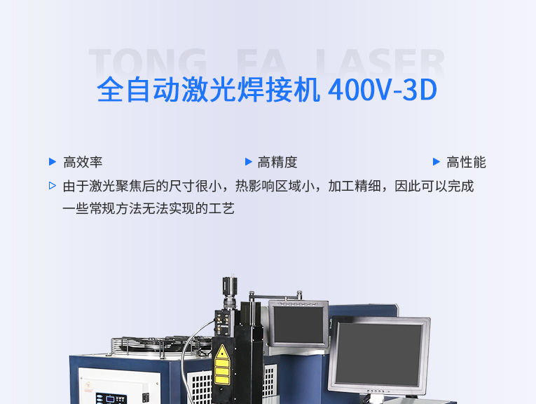 TFL-400V/500V-3D激光焊機是一款高穩(wěn)定性、大功率的焊機,滿足長時間生產(chǎn)的需要。大功率激光電源,大功率散熱系統(tǒng)滿足24小時大批量生產(chǎn)。機身采用高強度結(jié)構(gòu),保證精度、性能穩(wěn)定??刂葡到y(tǒng)是專為激光焊接量身定做的專業(yè)4軸控制系統(tǒng),穩(wěn)定性高,易學易懂易上手。擴展性強,可結(jié)合流水線、光電傳感器、氣動夾具等組合進行全自動無人值守式加工。