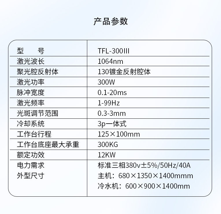 TFL-300Ⅲ型模具激光焊機是通發(fā)激光公司自主研發(fā)的一款大功率激光焊接機,采用通發(fā)自主研發(fā)的二代精密雙燈電源為燈泵浦驅動電源,配置觸摸屏,操作更方便。主機具備激光頭手搖升降與工作臺按鈕電動升降實現焊接不同厚度模具的激光焊加工。本款機型更適用于各類大功率、大面積激光修補的模具。由于激光功率大,同時可激光焊接鈹銅模具,鋁材模具或鋁材零件。在大面積激光修補模具時,可以使用更粗的焊絲,激光焊接效率大幅提升。