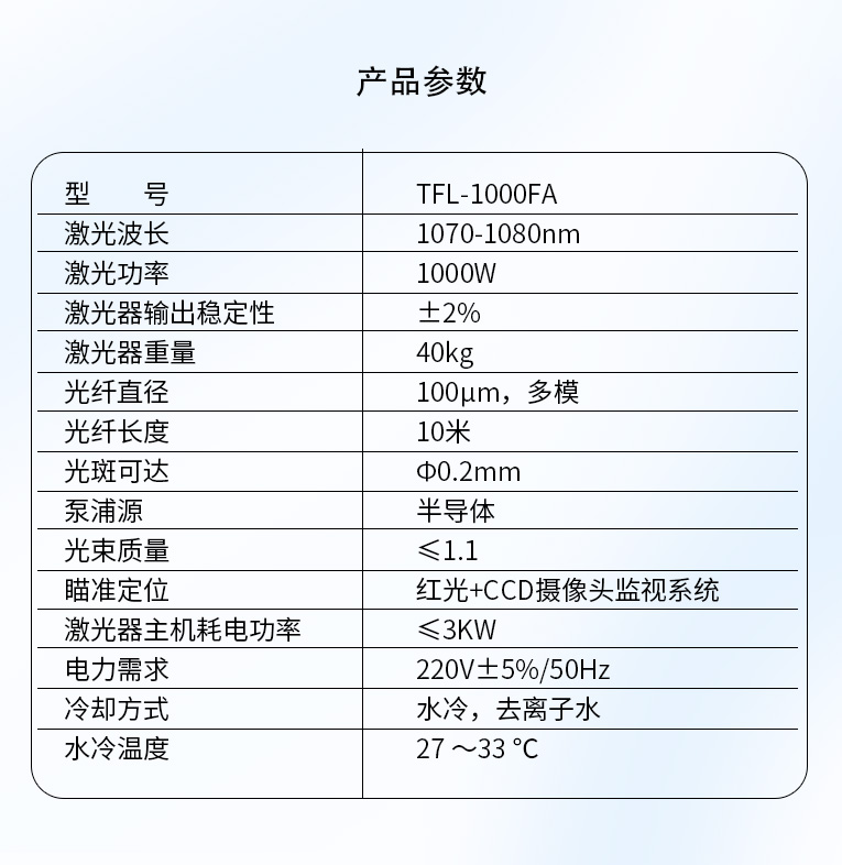 激光器主機(jī)耗電功率 |