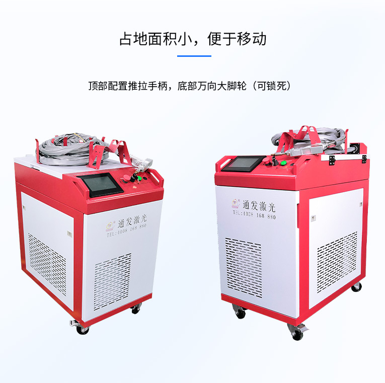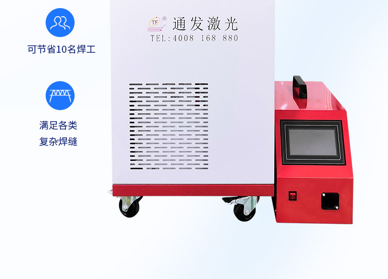 通發(fā)激光一體式手持式激光焊接機(jī),用手持式焊接槍替代以前固定光路,手拿焊接,靈活方便,焊接距離更長,克服工作臺(tái)空間的局限性,工件尺寸不統(tǒng)一時(shí)無法自動(dòng)焊接的情況下使用。主要針對大型工件、固定位置如內(nèi)直角、外直角、平面焊縫焊接、焊接時(shí)熱影響區(qū)域小,變形小、而且焊接深度大,焊接牢固。是遠(yuǎn)距離焊接大工件的較為靈活的全新的焊接工藝。