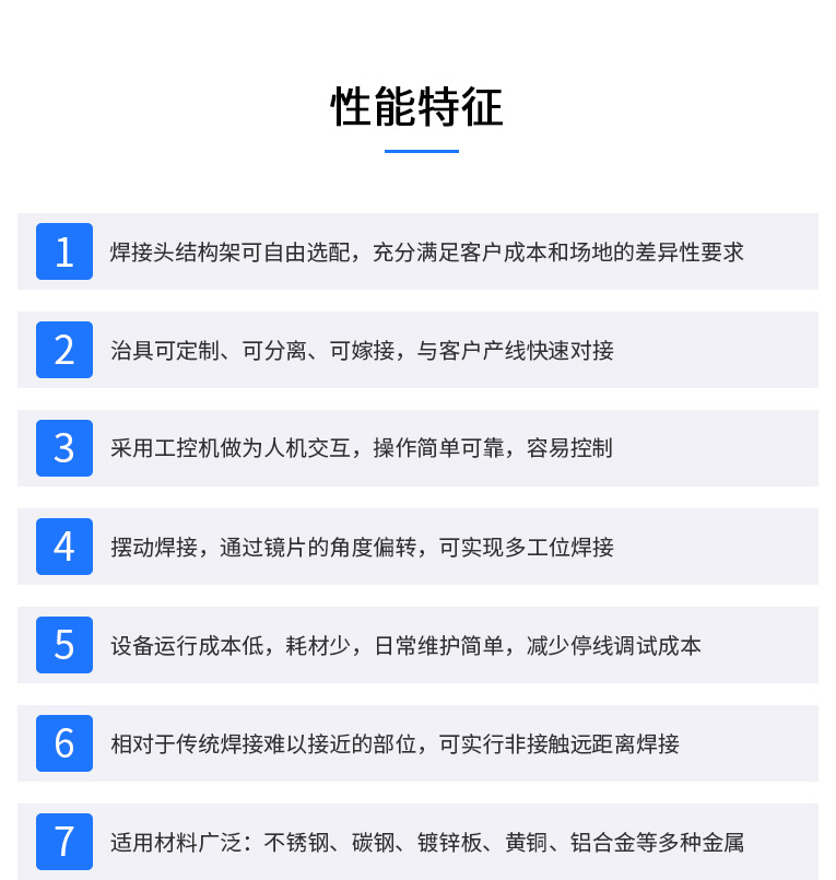 2、強(qiáng)大的PC控制,易于編程、調(diào)試和維護(hù)??赏瓿勺詣踊虬胱詣拥狞c(diǎn)焊、對接焊、疊焊、密封焊,針對復(fù)雜的平面直線、圓弧及任意軌跡的焊接。